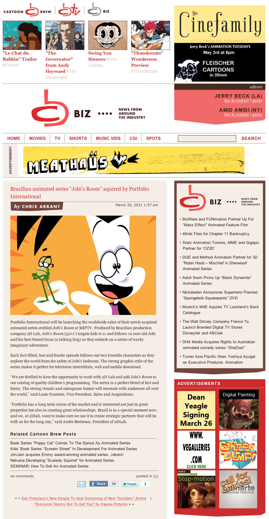 Quarto do Jobi na Cartoon Brew - USA